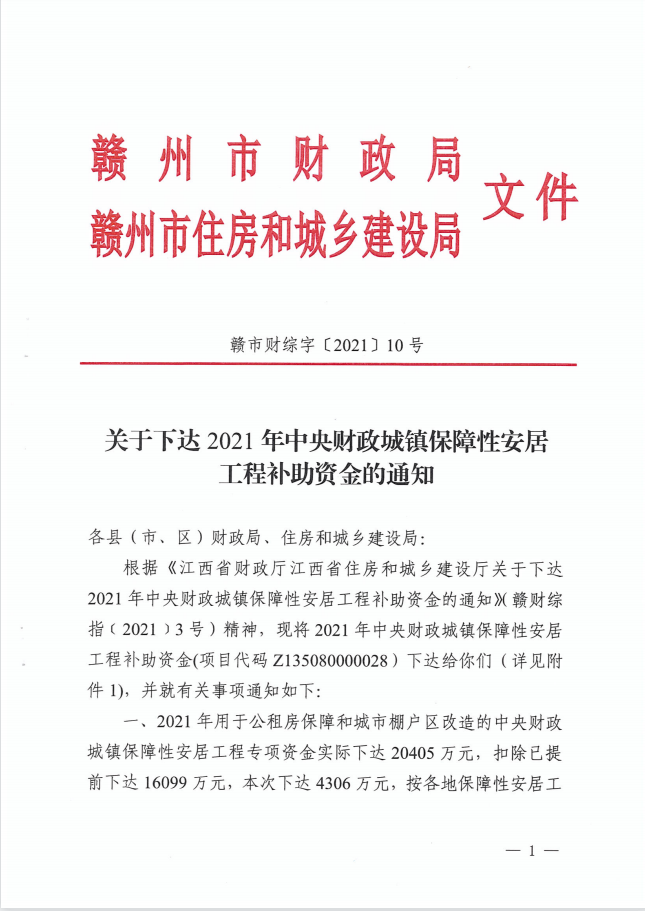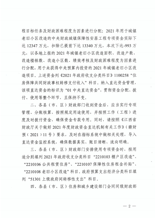关于下达2021年中央财政城镇保障性安居工程补助资金的通知